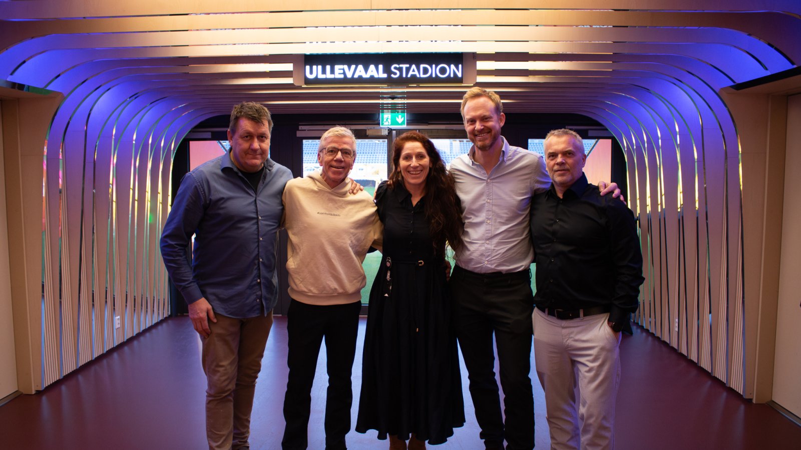 Bildet over: Fornøyde partnere på Ullevaal stadion. Fra venstre: Pål Breen (kommersiell leder Norsk Toppfotball og styremedlem Fotballstiftelsen), Arne Heimvik Knoph (daglig leder Fotballstiftelsen), Lise Klaveness (Fotballpresident og styremedlem i Fotballstiftelsen), Christian Aandalen (daglig leder i Fair Group), Rune Heimstad (styreleder Fair Group). Foto: Fair Group