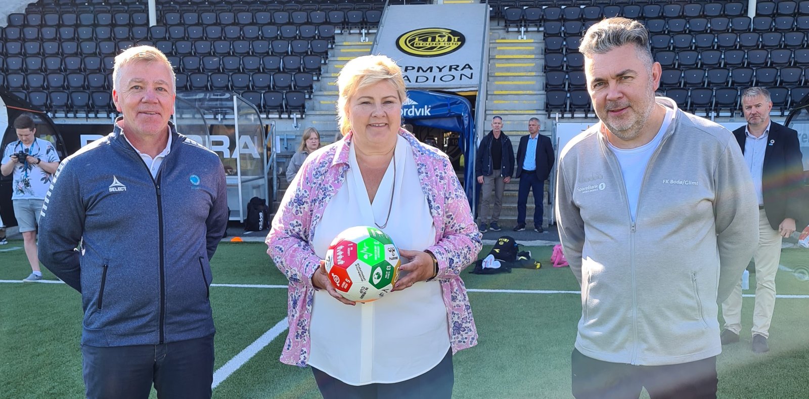 Statsminister Erna Solberg kom med en fantastisk gledesmelding for gatelagene i Fotballstiftelsen da hun besøkte Aspmyra og Bodø/Glimts gatelagsåpning.