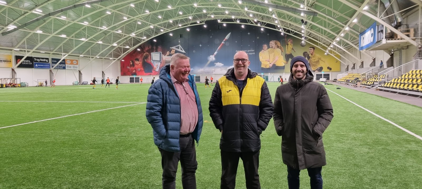 Asgeir Sveen og Tommy Fyhn står i spissen for en entusiastisk gjeng fra Raufoss og Selim Emeci har holdt hardest i trådene fra Fotballstiftelsen.