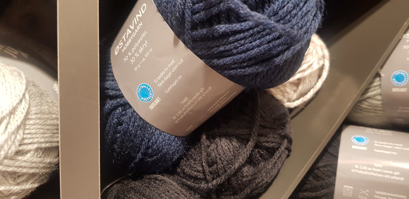 Og hvis du ikke finner Østavind-garnet med den fine Fotballstiftelsen-logoen på så ikke nøl med å ta kontakt med butikkledelsen og be dem ta det garnet inn i sortimentet!