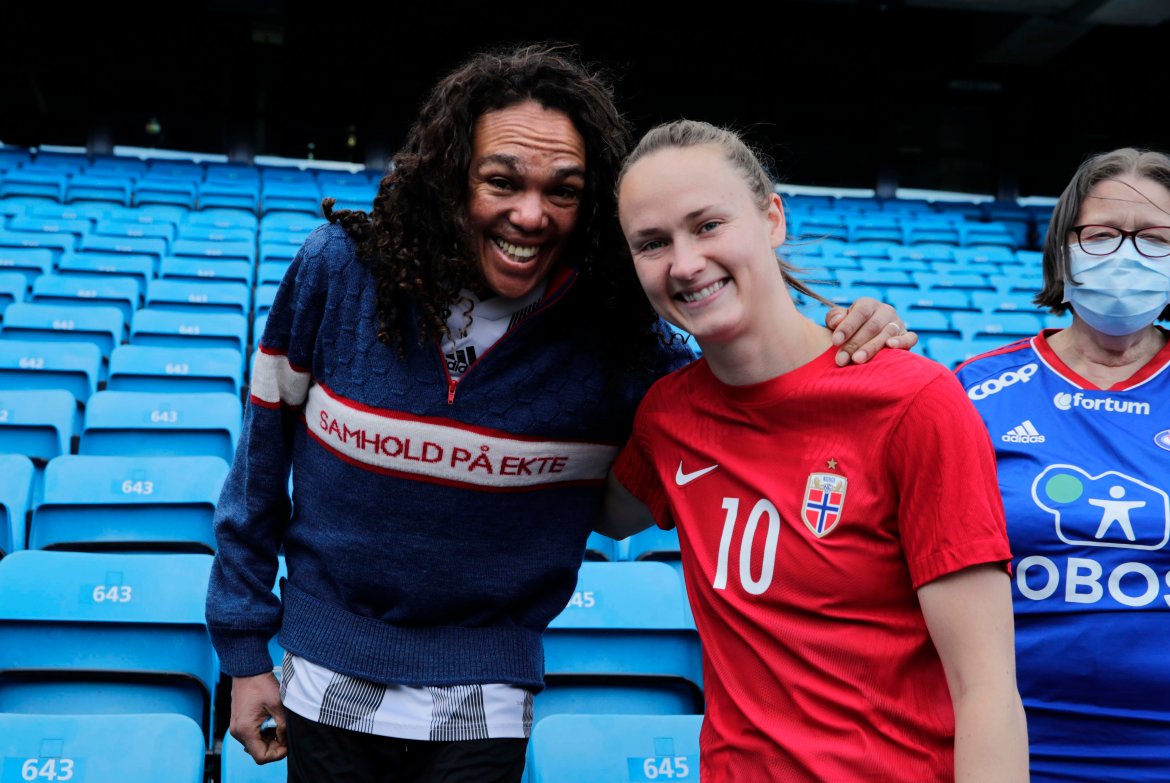 Så også bildene i denne saken - med et varmt møte mellom to sider av norske fotballkvinner. Gled deg til det magasinet kommer, altså om en måneds tid.