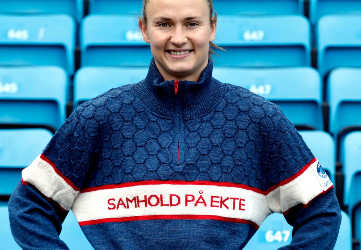 Og klikk deg inn og bestill din kvalitetsgenser, maskinstrikket i 100 prosent ull, inspirert av norske tradisjoner og dedikert til fotballens store samfunnsprosjekt. Og perfekt for deg som liker Samhold på ekte - og hvem gjør ikke det...