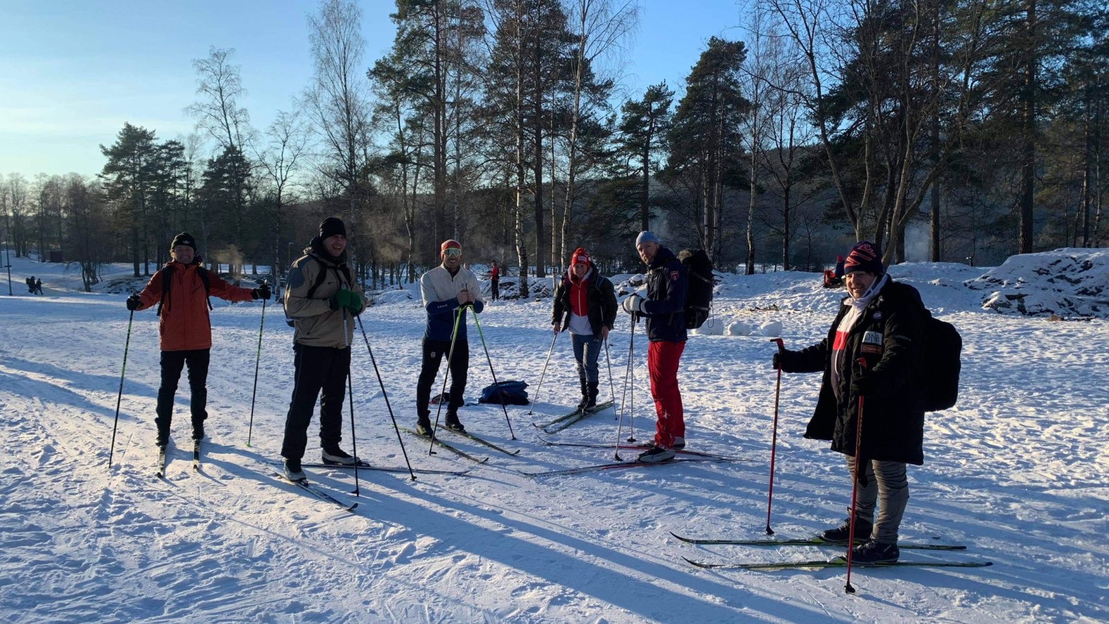 Med en kreativ trenergruppe i spissen har gatelaget til Vålerenga blant annet besteget Gaustatoppen, vært på ski- og slalomtur på Beitostølen, drevet med utendørs styrketrening, frisbeegolf, gåturer og nå ukentlige skiturer. Denne fredagen ble Fotballstiftelsen invitert med og når muligheten til å bytte ut hjemmekontor med Nordmarka byr seg, så er det bare å hive seg selv om en ikke har gått en ordentlig skitur på snart 20 år.