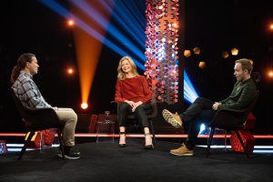 Olav (spiller) og Svein Helge (trener) fra Vålerenga Gatelag var gjester hos Lindmo på NRK fredag.